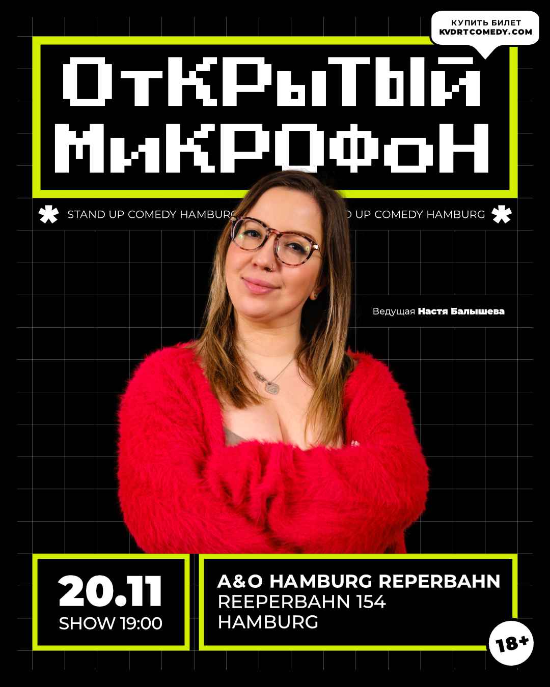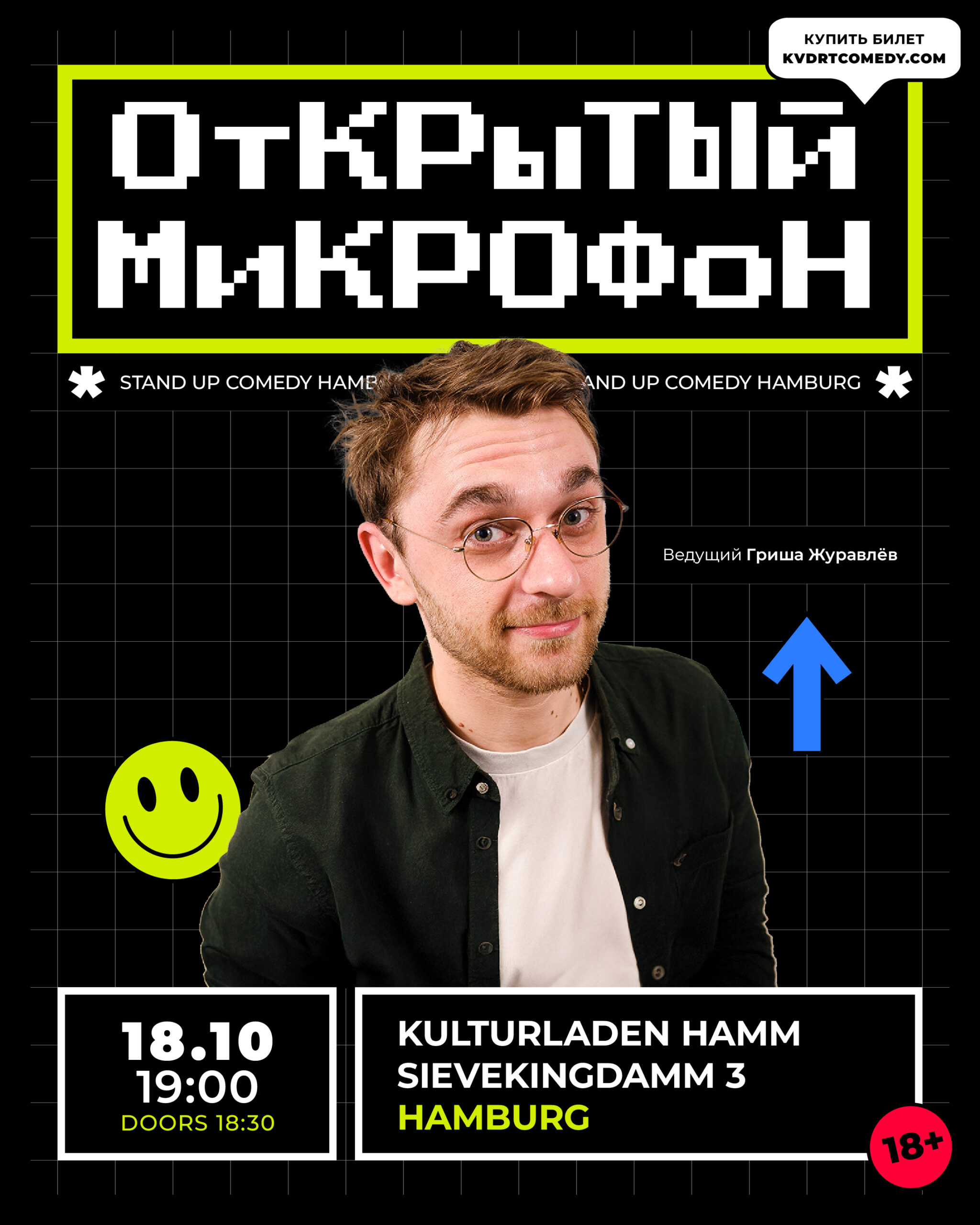 Мы делаем юмор на русском и украинском языках: для тех, кто недавно поменял место жительства и нуждается в новых друзьях и событиях, или уже много лет считает себя в Германии местным жителем. Совершенно неважно, кто ты. (А нет, важно. Но не сильно. Главное — чтобы не Маргарита Симоньян). Мы будем одинаково рады увидеть тебя в зале или у нашего открытого микрофона! <3