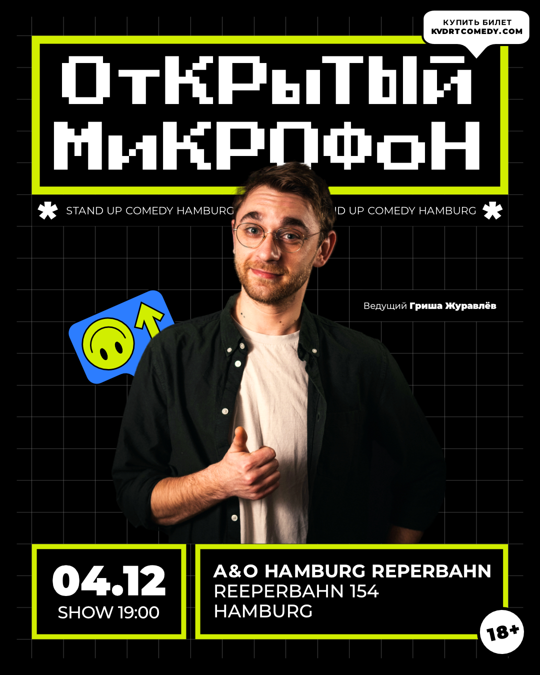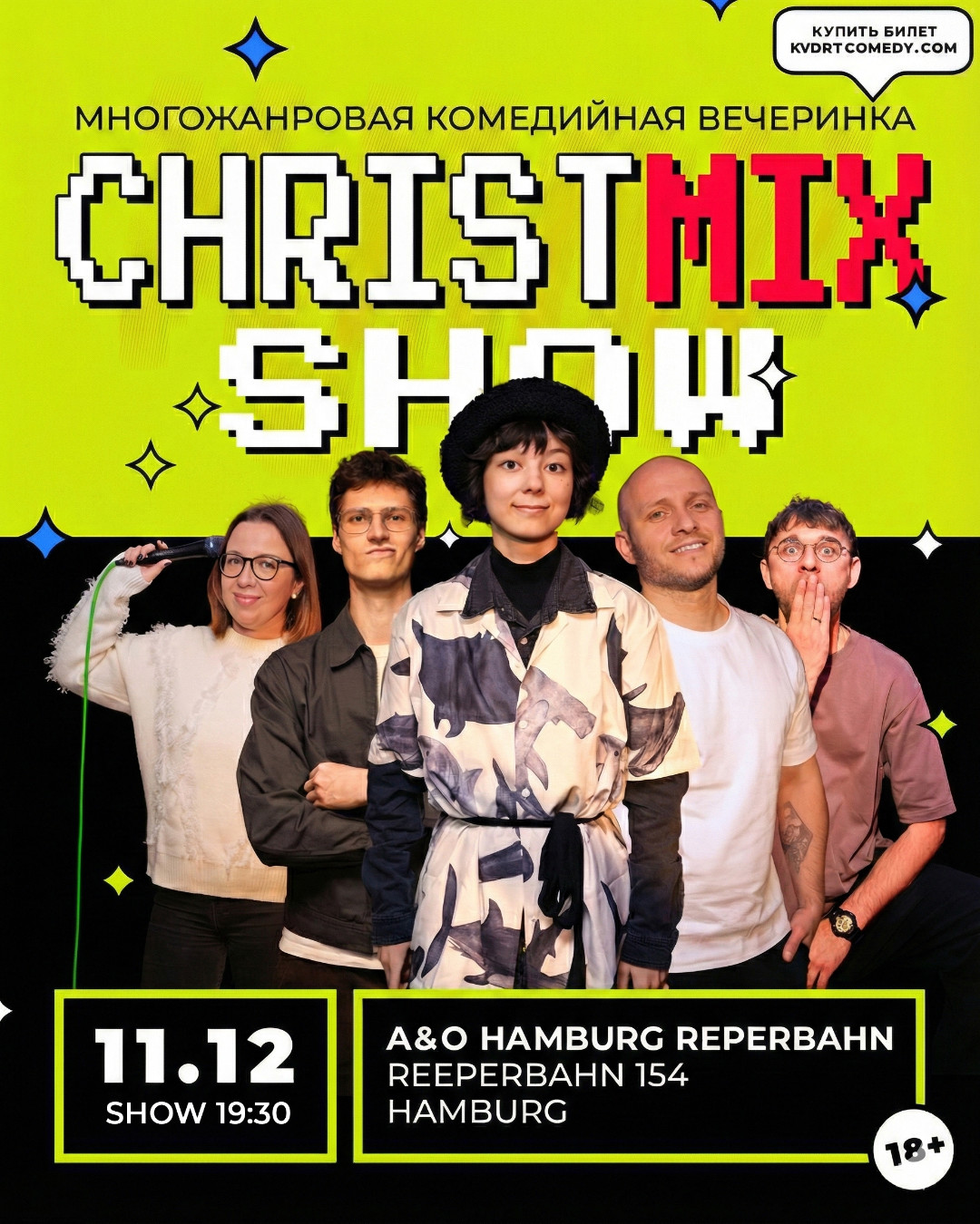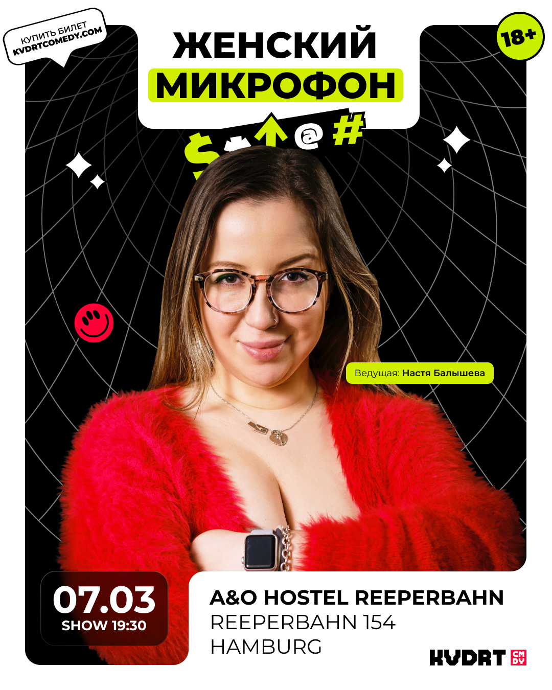 KVDRT COMEDY — это творческая банда смешных людей, со своими собственными концертами, разноформатными комедийными шоу и гастролями знаменитых комиков. Несколько раз в месяц мы выступаем в Гамбурге — и с аппетитом заглядываемся на выездные мероприятия в другие города Европы.